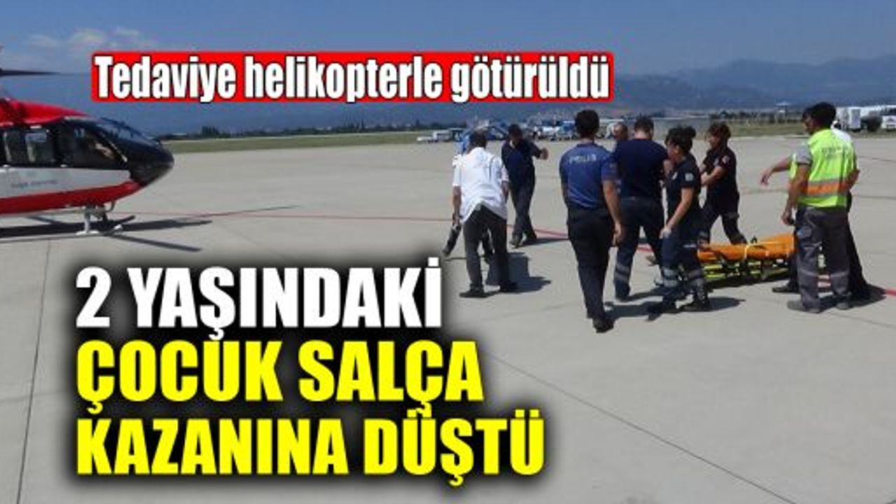 Balıkesir'de kaynayan salça kazanının içine düşerek yanan 2 yaşındaki çocuk, ambulans helikopterle Ankara'ya gönderildi.