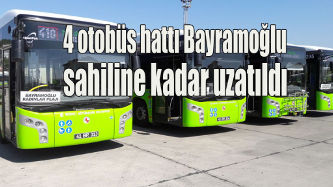 Kocaeli Büyükşehir Belediyesi UlaşımPark A.Ş, vatandaşların Bayramoğlu Sahili’ne kısa sürelerde ulaşabilmeleri için hatları uzattı. Gebze Otogar’dan Bayramoğlu Sahili’ne kadar giden 505 No’lu hatta ilave olarak daha önce Darıca Farabi Devlet Hastanesinde son durak yapan 410 - 415- 425 ve 440 No’lu hatlar da artık Bayramoğlu Sahili’ne kadar yolcu taşıyacak. Vatandaşların Bayramoğlu Sahili’ne gitmesini kolaylaştıracak hizmet 16 Temmuz 2016 Cumartesi günü başlayacak.