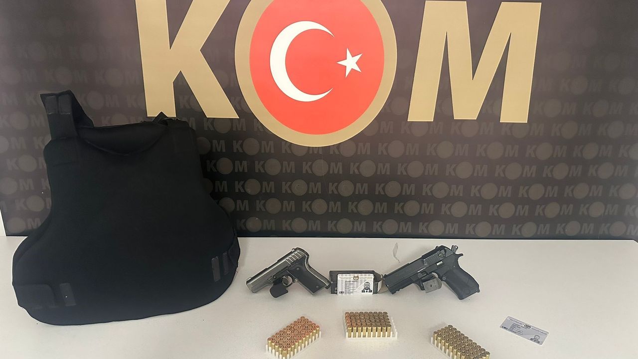 Yapılan aramada 2 adet ruhsatsız tabanca, 165 adet fişek, 1 adet balistik yelek, 2 adet laptop, 3 adet telefon, 1 adet sim kart ve 2 adet sahte avukat kimliği ele geçirildi.