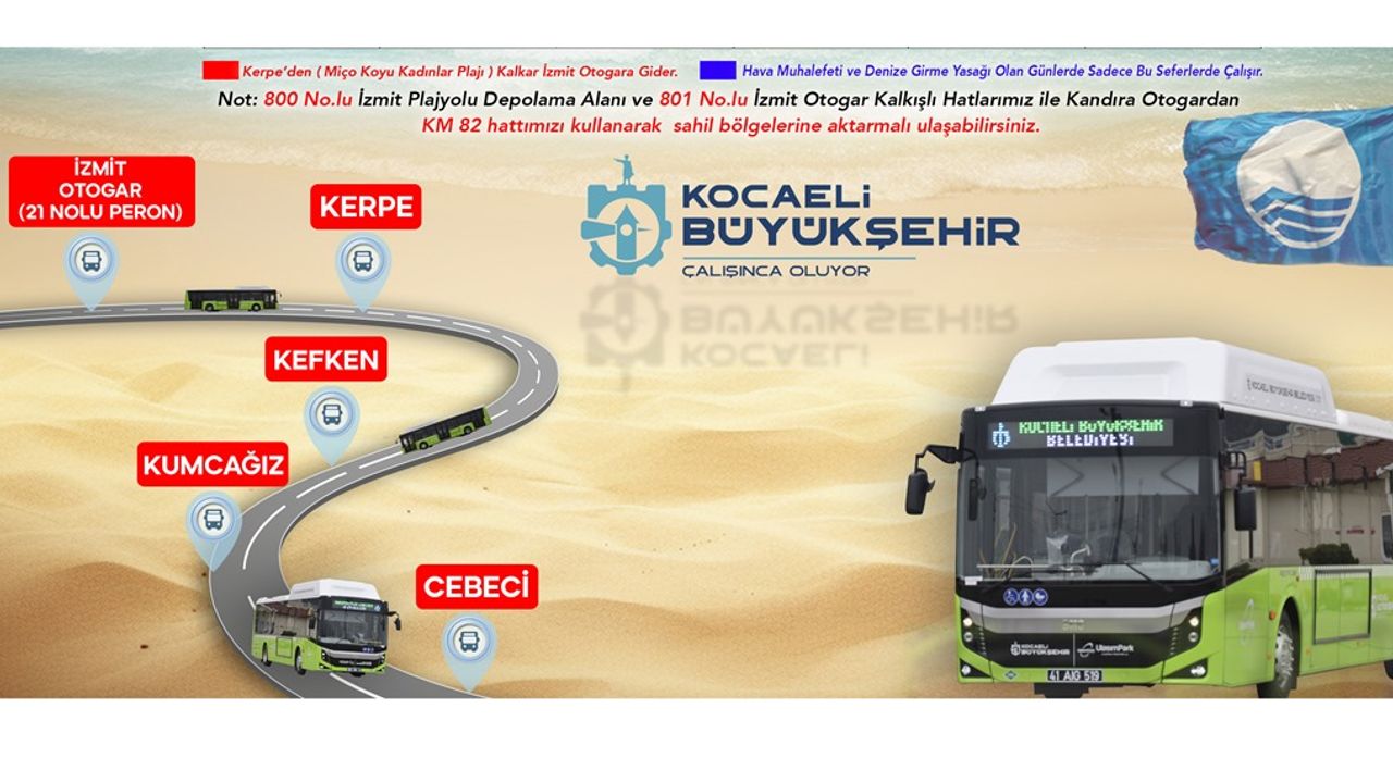 Kocaeli Şehirlerarası Otobüs Terminali’nden hareket edecek olan otobüsler, doğrudan sahillere ulaşım sağlayarak hem zaman kazandıracak hem de yolculuğu keyfe dönüştürecek.