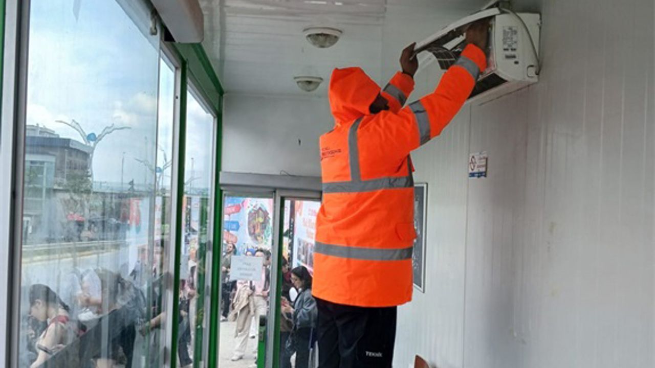 Kocaeli Büyükşehir Belediyesi, il genelinde pek çok noktada yer alan akıllı duraklarda iklimlendirme cihazlarının bakım ve onarımlarını gerçekleştiriyor. Bu kapsamda Büyükşehir ekipleri, Umuttepe B Kapısı’nda bulunan akıllı durağın klimasının genel bakımını tamamladı.