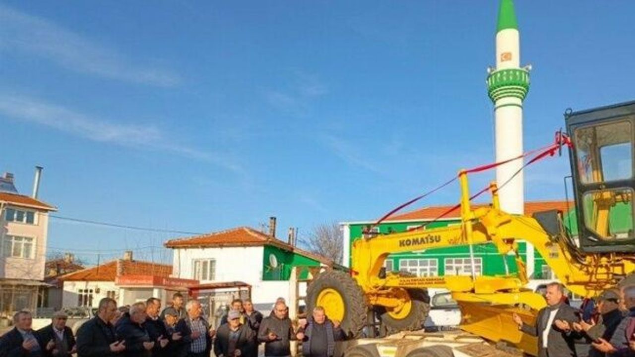 Alınan iş makinesi için köy meydanında Sultanköy Köy Camii imamı Fahrettin Turan tarafından okunan duanın ardından kurban kesildi ve dualar edildi.