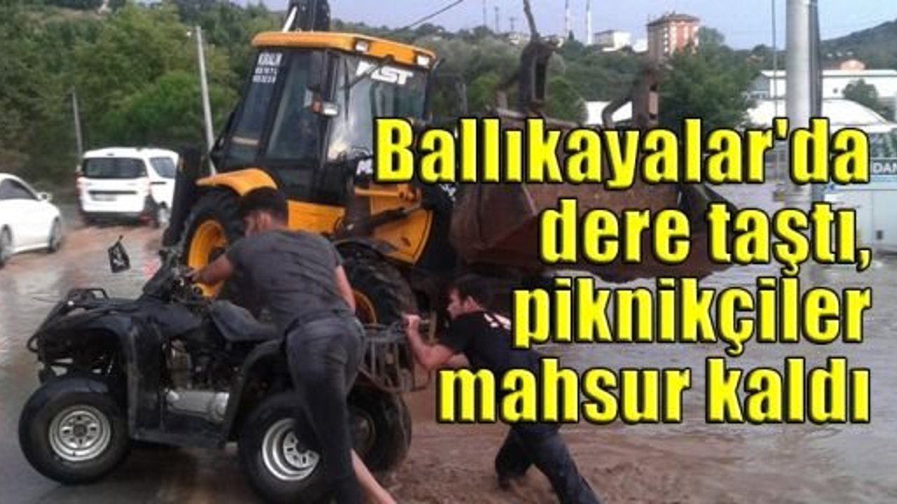 Tavşanlı Mahallesi'ndeki Ballıkayalar Tabiat Parkı'na piknik yapmak için giden 20 kişi, kanyonun içinden geçen derenin yoğun yağış nedeniyle taşması sonucu mahsur kaldı.