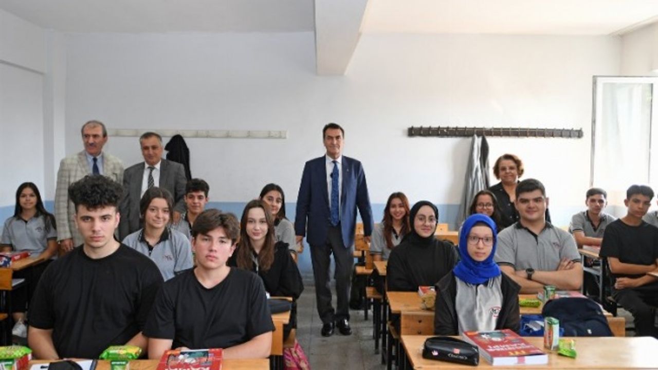 Osmangazi Belediye Başkanı Mustafa Dündar, sınıfları gezerek yardımcı kitap seti hediye ettiği öğrenciler ile sohbet ederek taleplerini dinledi.