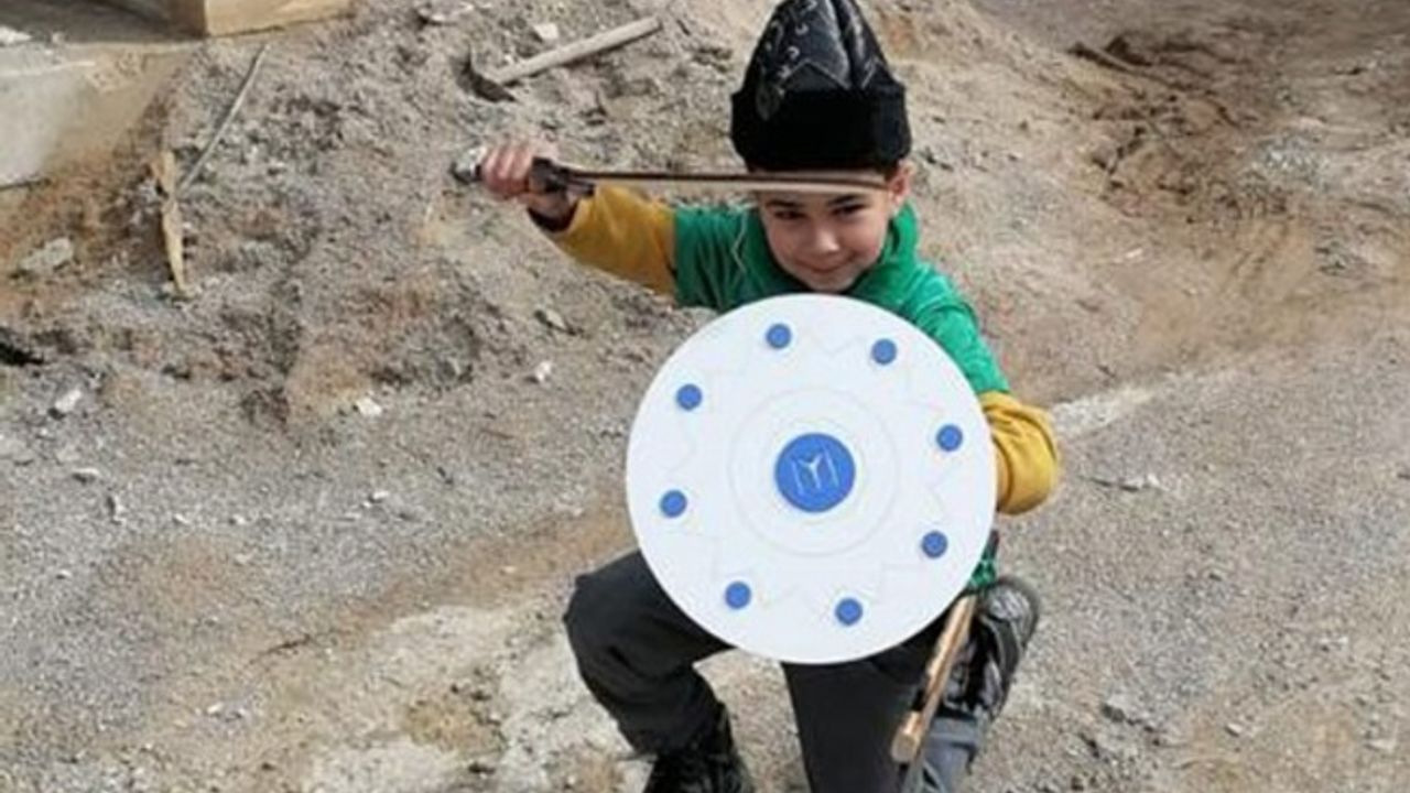 Depremin ardından bölgeye giden Bursa Osmangazi Belediyesi’ne bağlı görevli mühendisler, hurdaya dönmüş bir otomobilin jant kapağından kendisine kalkan yapan ve bir tahta parçasını da kılıç olarak kullanıp sokakta oyun oynayan 6 yaşındaki Osmangazi Avcı’yı gördü.