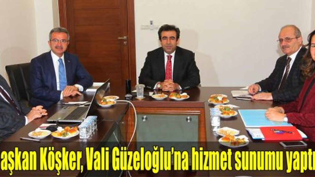 Belediye Başkanı Adnan Köşker, hazırlanan slayt gösterimi eşliğinde, Gebze Belediyesi tarafından ilçeye kazandırılan hizmetler ve devam eden projeler ve yeni yatırımlar hakkında Kocaeli Valisi Hasan Basri Güzeloğlu’na geniş kapsamlı bilgi aktarımı ve sunum yaptı.