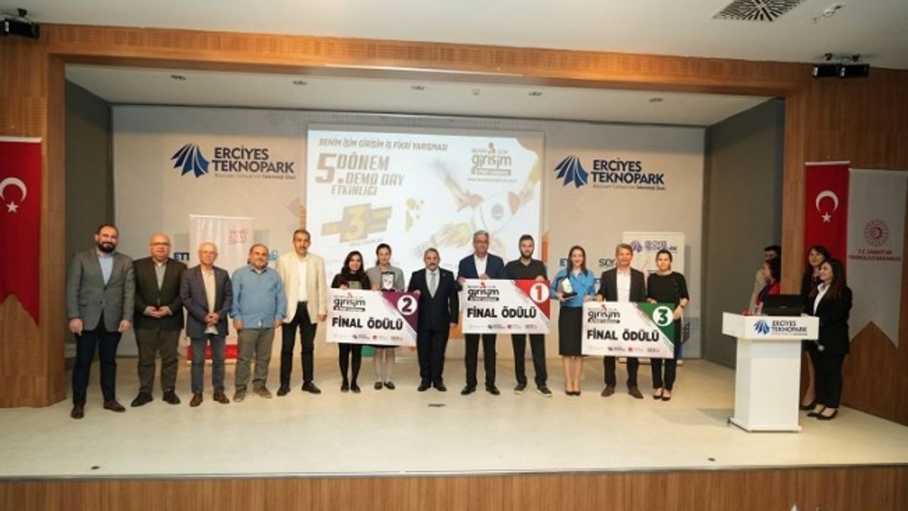 Erciyes Teknopark Konferans Salonu’nda gerçekleşen düzenlenen Benim İşim Girişim Yarışması’nın V. Dönem final etkinliğine Erciyes Üniversitesi Rektörü ve Erciyes Teknopark Yönetim Kurulu Başkanı Prof. Dr. Oktay Özkan, Oran Kalkınma Ajansı yetkilileri, Erciyes Teknopark Yönetim Kurulu üyeleri, Erciyes Teknopark Genel Müdürü Serhat Dalkılıç, yatırımcılar, öğretim elemanları, takımlar, öğrenciler ve basın mensupları katıldı.