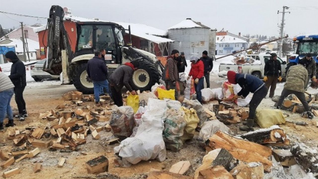 Bilecik’in Pazaryeri ilçesinde depremzedeler için toplanan odunlar ilk önce kesildi, sonra çuvallanıp deprem bölgelerine yollandı.Sedat CEYLAN / BİLECİK (İGFA) - Pazaryeri ilçesinde odun işi ile uğraşan yardımseverler tarafından hazırlanan odunlar Pazaryeri Belediyesi tarafından teslim alınırken odunlar gönüllü vatandaşlar tarafından kesilerek deprem bölgelerine gönderilmek için çuvallara dolduruldu.