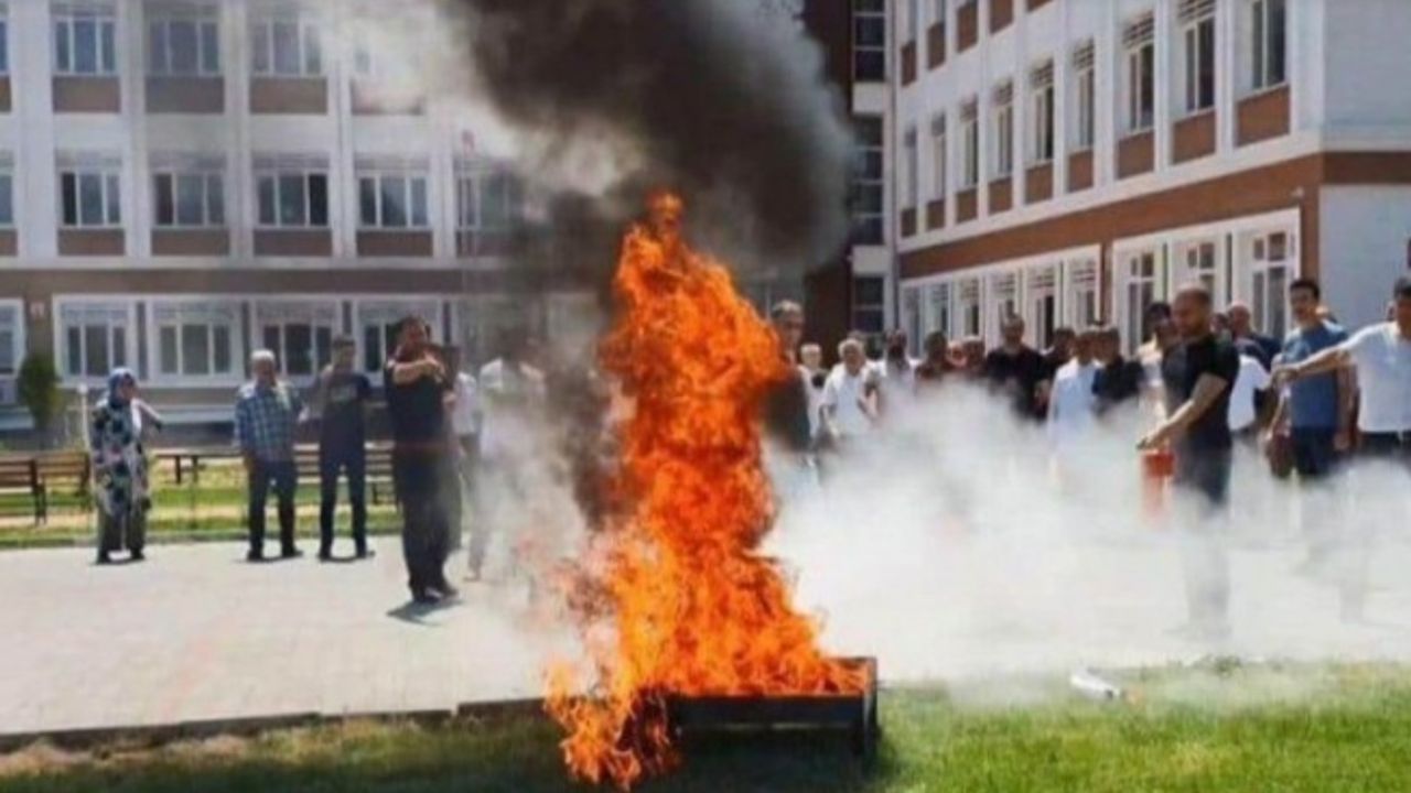 Senaryo gereği tatbikat sırasında İl Milli Eğitim Müdürlüğü bahçesinde meydana gelen yangın olayı, itfaiye ekipleri tarafından zayiatlar en aza indirilerek, kontrol altına alınma ve söndürme faaliyetleri gerçekleştirildi.