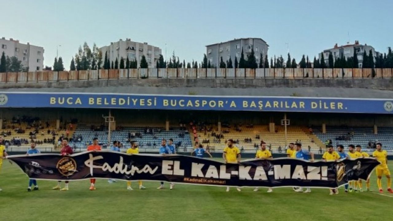 TFF 2. Lig'de mücadele eden İzmir temsilcilerinden Bucaspor 1928'li futbolcular, Ankara Demirspor karşılaşması öncesinde "Kadına El Kalkmaz" sloganlı pankart açtı.İZMİR (İGFA) - Aile ve Sosyal Hizmetler Bakanlığı ve İçişleri Bakanlığı iş birliğinde yürütülen; Aile içi ve Kadına Yönelik Şiddetle Mücadelenin etkin ve etkili sürdürülebilmesine yönelik farkındalık oluşturmak için, "Kadına El Kalkamaz" sloganı çerçevesinde Bucaspor 1928'li futbolcular, TFF 2. Lig Kırmızı Grup'ta evinde Ankara Demirspor'la karşılaştığı randevu öncesi açtığı pankartla destek verdi.