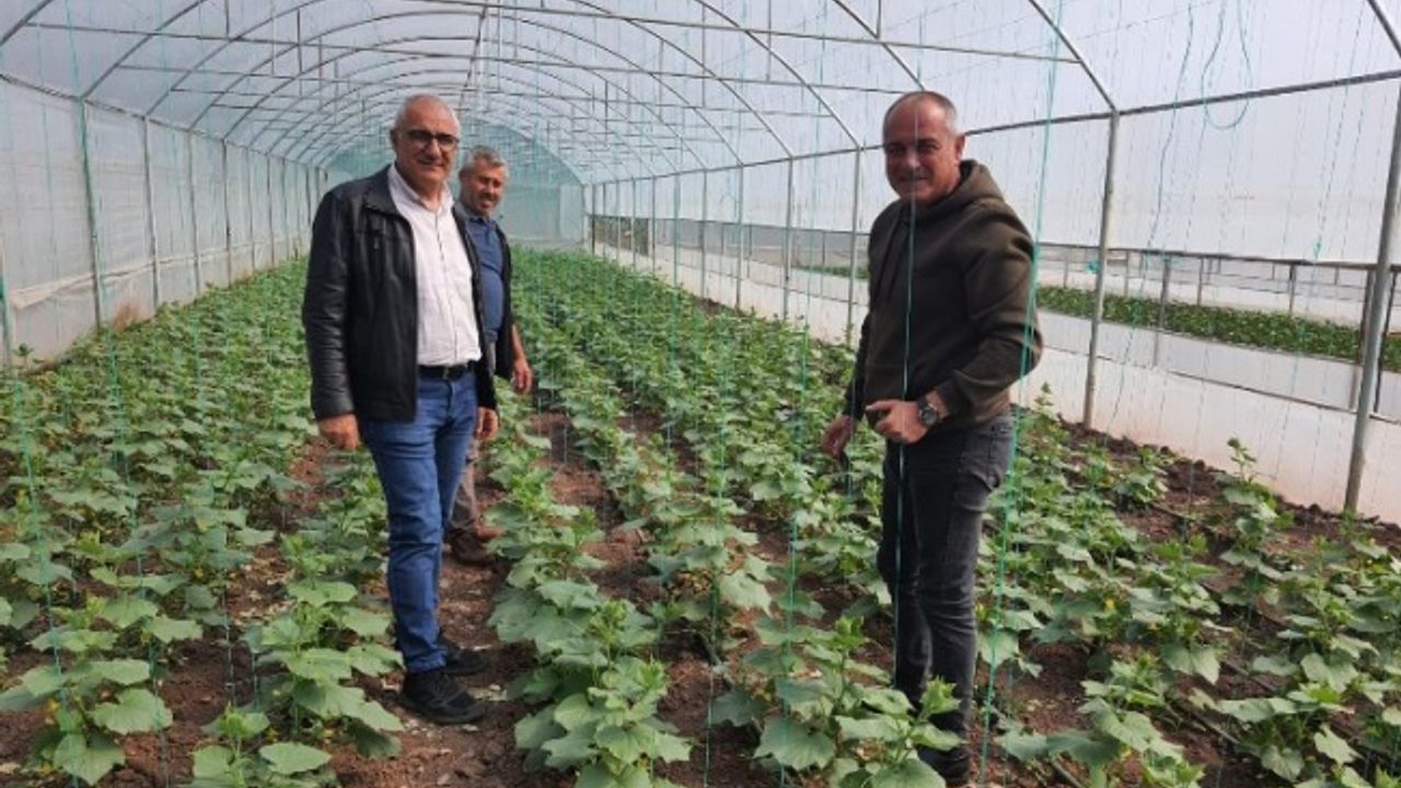 Gemlik Belediye Başkanı Mehmet Uğur Sertaslan ile serada incelemelerde bulunan CHP Gemlik İlçe Başkanı Şükrü Aksu, belediyenin organik ve uygun fiyatlı tarım hamlesinin, dar gelirli Gemliklilere kaliteli gıdanın ulaşmasında önemli olduğunu söyledi.