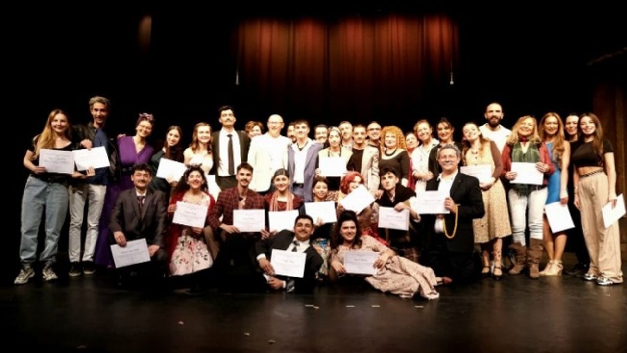 Kursu başarıyla tamamlayan gençler belgelerini Devlet Tiyatrosu sanatçılarının ellerinden aldılar.