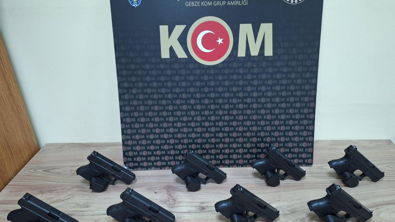 11.06.2025 günü Çayırova’da durdurulan araçta yapılan aramada, 8 adet ruhsatsız tabanca ve tabancalara takılı vaziyette 8 adet şarjör yakalandı.