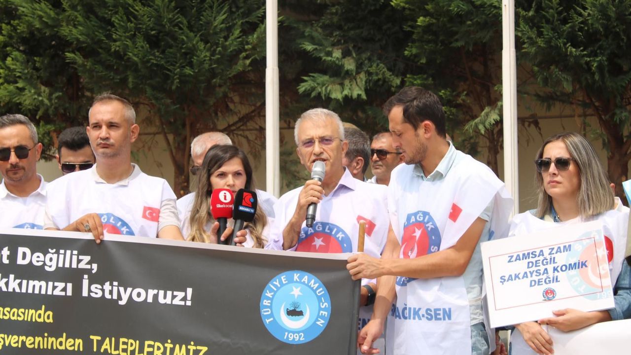 Türkiye Kamu Sen’e bağlı sendikaların 18 Ağustos 2025 tarihinde iş bırakma bırakmaları nedeniyle Türk Sağlık Sen Kocaeli Şube Başkanı Ömer Çeker, Kocaeli Devlet Hastanesi önünde bir basın açıklaması yaptı.