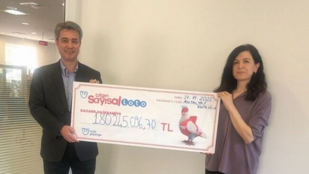 Çılgın Sayısal Loto çekilişinde 180 milyon 245 bin 96 TL’lik büyük ikramiye kazanan talihli çekini teslim aldı.İSTANBUL (İGFA) - Sisal Şans tarafından 16 Kasım Çarşamba günü gerçekleştirilen Çılgın Sayısal Loto çekilişinde Antalya Kumluca’dan oynayarak 180 milyon 245 bin 96 TL ikramiye kazanan talihli çekini teslim aldı.