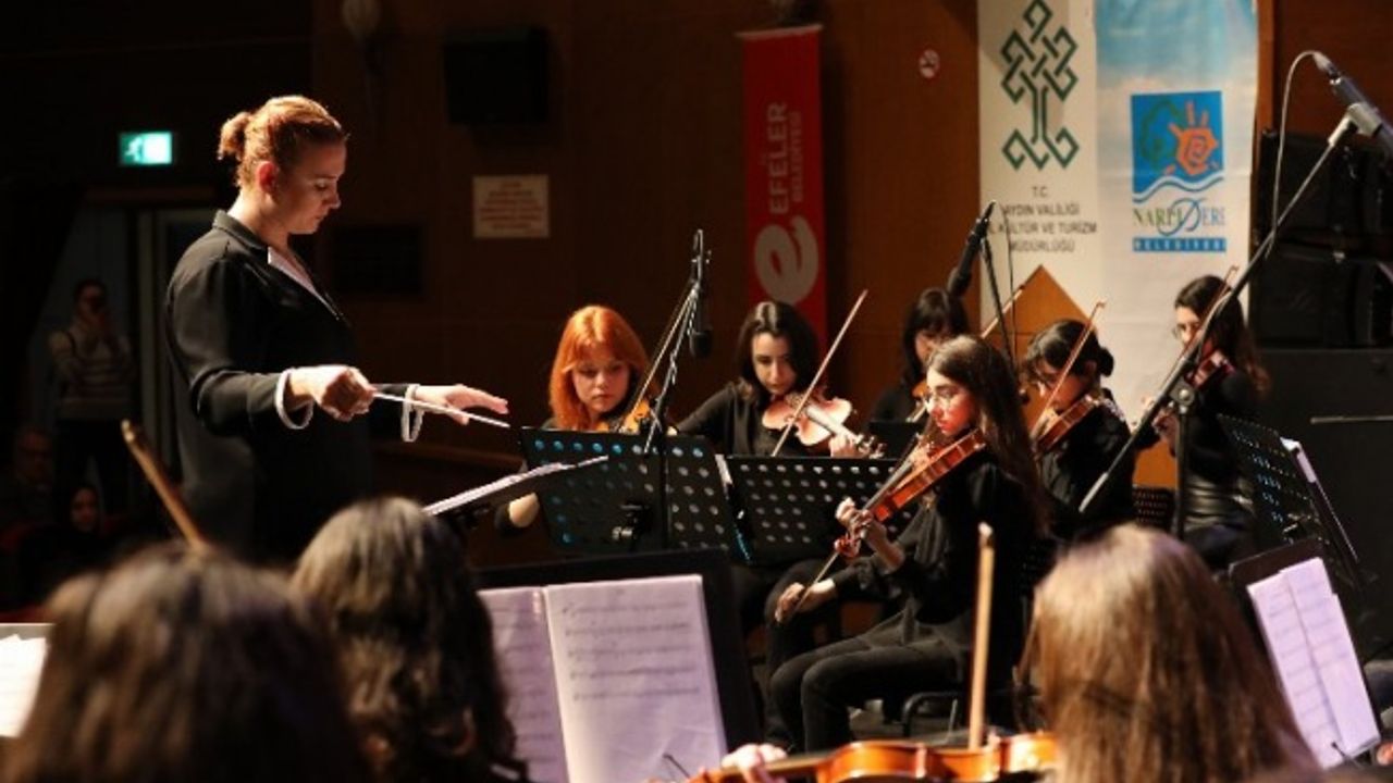 Narlıdere Belediyesi Çocuk Senfoni Orkestrası, bu kez Aydın’da gönülleri fethetti. Efeler Belediyesi’nin çocuklara özel kültür sanat etkinlikleri kapsamında Aydın Kültür Merkezi Hidayet Sayın Salonu’nda sahne alan orkestra, Aydınlılara muhteşem bir gece yaşattı. Narlıdere Belediye Başkanı Ali Engin ve Efeler Belediye Başkan Vekili Abidin Arslan'ın da takip ettiği konserde hazırladıkları eserleri Efeler halkı için söyleyen Narlıdere Belediyesi Çocuk Senfoni Orkestrası, uzun süre ayakta alkışlandı. Sanat Yönetmenliğini Dilek Rodos'un, şefliğini ise Ecem İlayda Aşçılar üstlendiği gecede klasik batı müziği eserlerinin yanı sıra dizi-film müzikleri ve Anadolu kültürünün en sevilen eserleri seslendirildi.