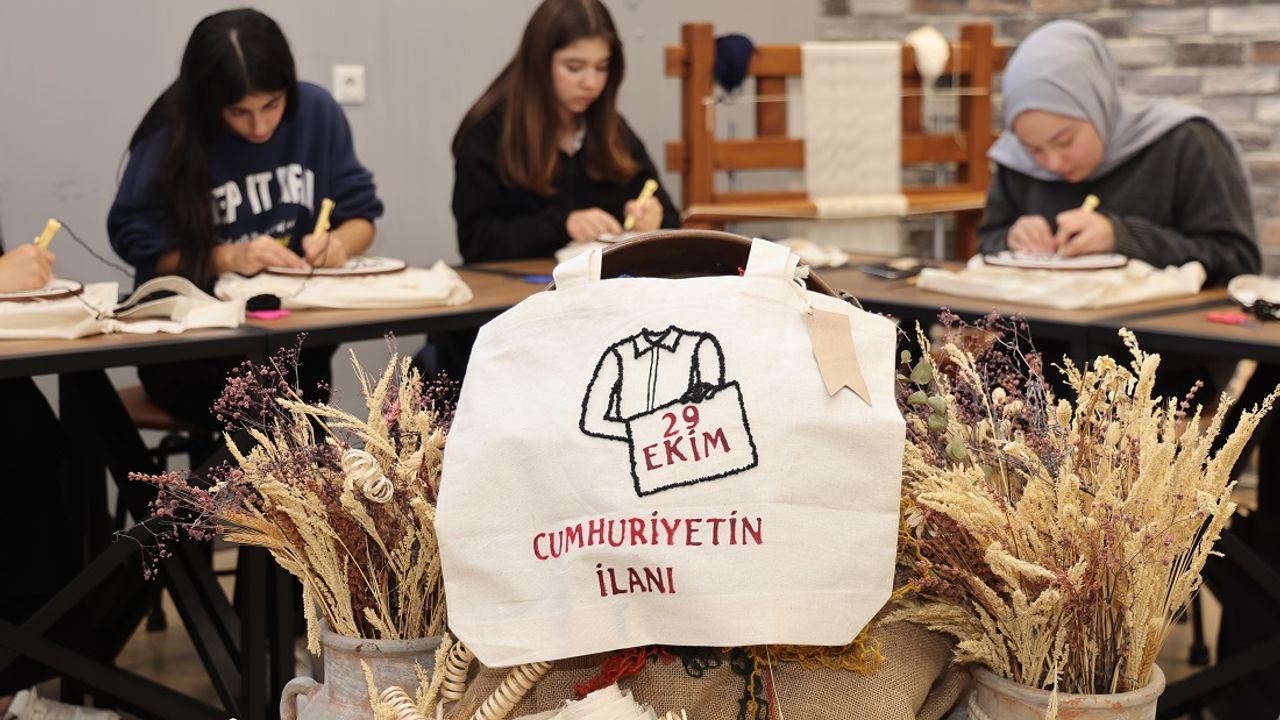 Atölye boyunca büyük bir heyecan ve özenle çalışan öğrenciler, kendi elleriyle oluşturdukları çantalarda Cumhuriyet’in simgelerini yaşattı.