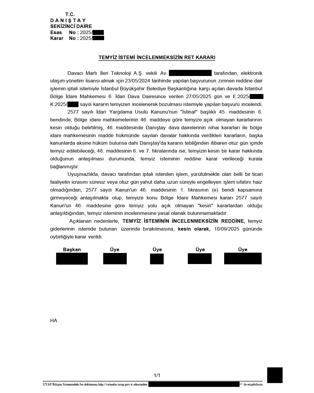 Süreci Danıştay’a taşıyan İBB, burada da aynı sonucu aldı: Danıştay, Martı’nın haklılığını bir kez daha onayladı. Bu kararla birlikte tüm yasal süreçler tamamlanmış oldu.