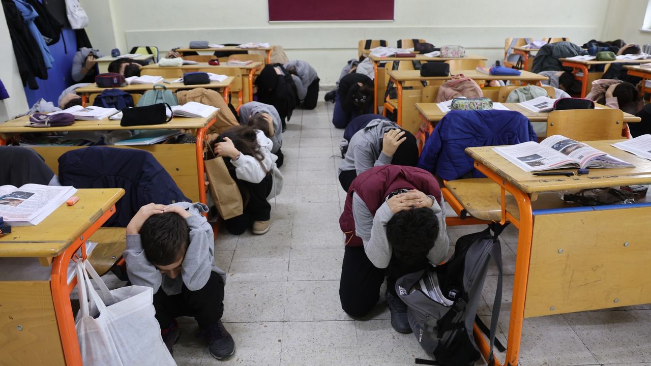 Ardından öğrencilere deprem öncesinde, deprem anında ve sonrasında neler yapmaları gerektiği konusunda bilgilendirme eğitimi verildi. Öğretmenler de tahliye süreci hakkında bilgilendirildikten sonra tatbikat başlatıldı.