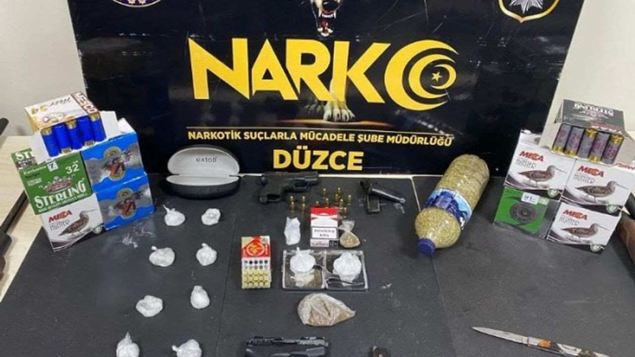 Düzce'de uyuşturucu madde ticareti yapmak ve madde kullanmak suçları kapsamında yapılan sokak çalışmalarından 5 şüpheliden 2'si gözaltına alındı.DÜZCE (İGFA) - Düzce'de Cumhuriyet Başsavcılığım'nca uyuşturucu madde ticareti yapmak, uyuşturucu madde bulundurmak ve kullanmak suçu kapsamında yürütülen soruşturma kapsamında NSM Şube Müdürlüğü ekiplerince yapılan sokak çalışmalarında 2 şüpheli gözaltına alınırken, çeşitli miktarlarda uyuşturucu madde ele geçirildi.