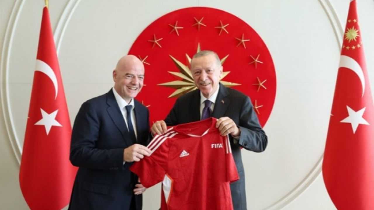 Cumhurbaşkanı Recep Tayyip Erdoğan, FIFA Başkanı Gianni Infantino'yu Atatürk Havalimanı'nda kabul etti.
