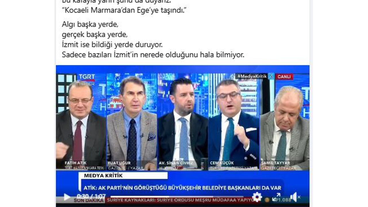 “Ben neredeyim ya?” diye sordu mu? Videoyu izlemeye gerek yok, yetki bilmeye gerek yok, tek refleks var: “Geçiyor!” Bu kafayla yarın şunu da duyarız: “Kocaeli Marmara’dan Ege’ye taşındı.” Algı başka yerde, gerçek başka yerde, İzmit ise bildiği yerde duruyor. Sadece bazıları İzmit’in nerede olduğunu hala bilmiyor.”