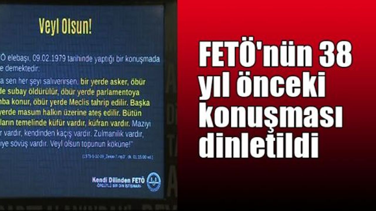 Toplantıda, Fetullahçı Terör Örgütü'nün (FETÖ) elebaşı Fetullah Gülen'in farklı tarihlerde yaptığı konuşmalara da yer verildi. Gülen'nin 9 Şubat 1979 yılında yaptığı ileri sürülen bir konuşmanın videosunda şu ifadeler yer aldı: "Ama sen her şeyi salıverirsen, bir yerde asker, öbür yerde subay öldürülür, öbür yerde parlamentoya bomba konur, öbür yerde Meclis tahrip edilir. Başka bir yerde masum halkın üzerine ateş edilir. Bütün bunların temelinde küfür vardır, küfran vardır. Maziyi inkar vardır, kendinden kaçış vardır. Zulmanilik vardır, maziye sövüş vardır. Veyl olsun topunun köküne!"