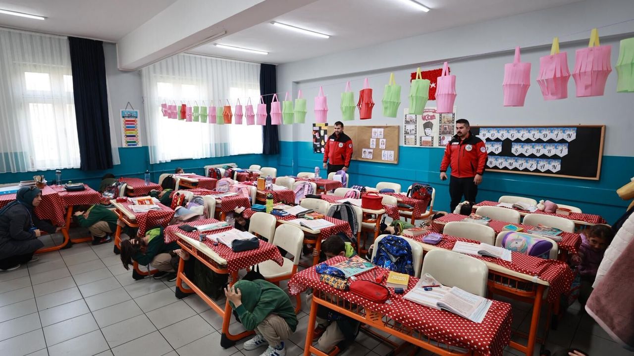 Gerçekçi bir senaryo üzerinden gerçekleştirilen tatbikatta, deprem anında yapılması gereken “çök–kapan–tutun” hareketi öğrencilere uygulamalı olarak anlatıldı. Ardından okulun tahliye süreci canlandırılarak öğrencilerin güvenli şekilde toplanma alanına yönlendirilmesi sağlandı.