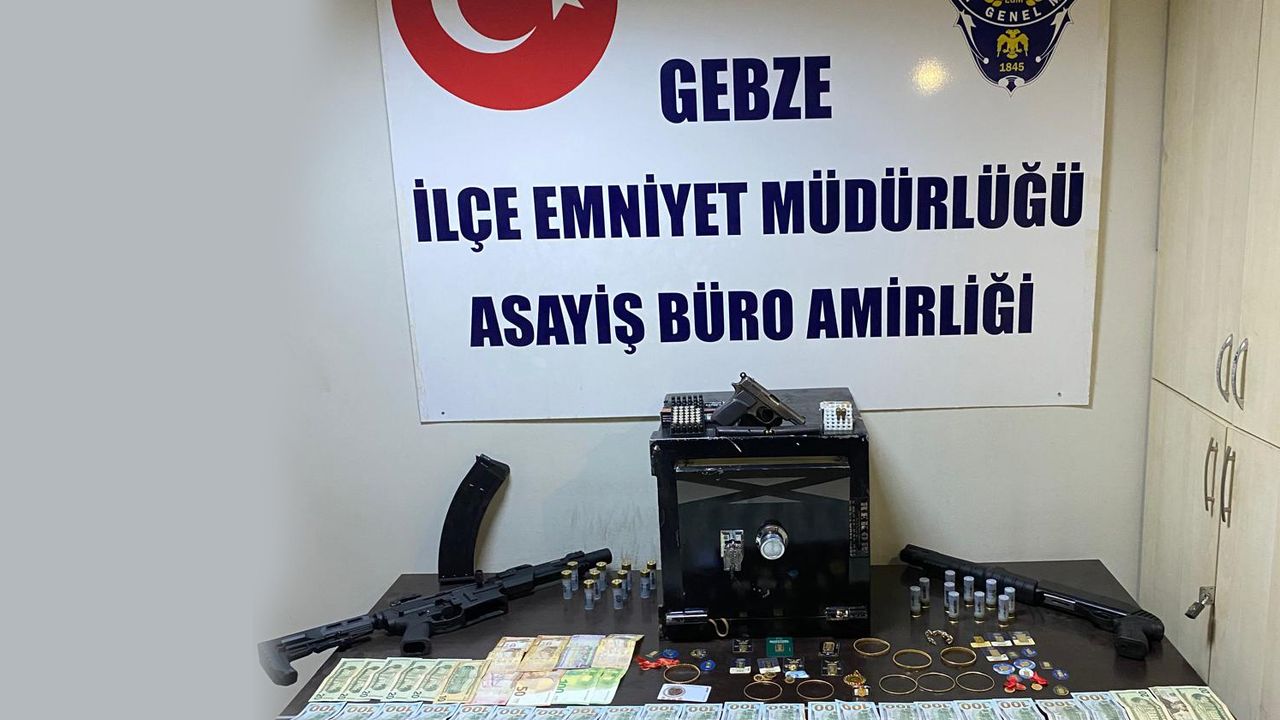 Kocaeli İl Emniyet Müdürlüğü tarafından Gebze’de bir evden içinde yüklü miktarda para ve ziynet eşyası bulunan çelik kasanın çalınması olayıyla ilgili yapılan çalışmalar sonucunda; olayın şüphelileri E.S., Y.K.. O.T.. E.S.. E.S. isimli 5 şahıs düzenlenen operasyonda çalınan çelik kasa, para ve ziynet eşyalarla birlikte yakalandı.