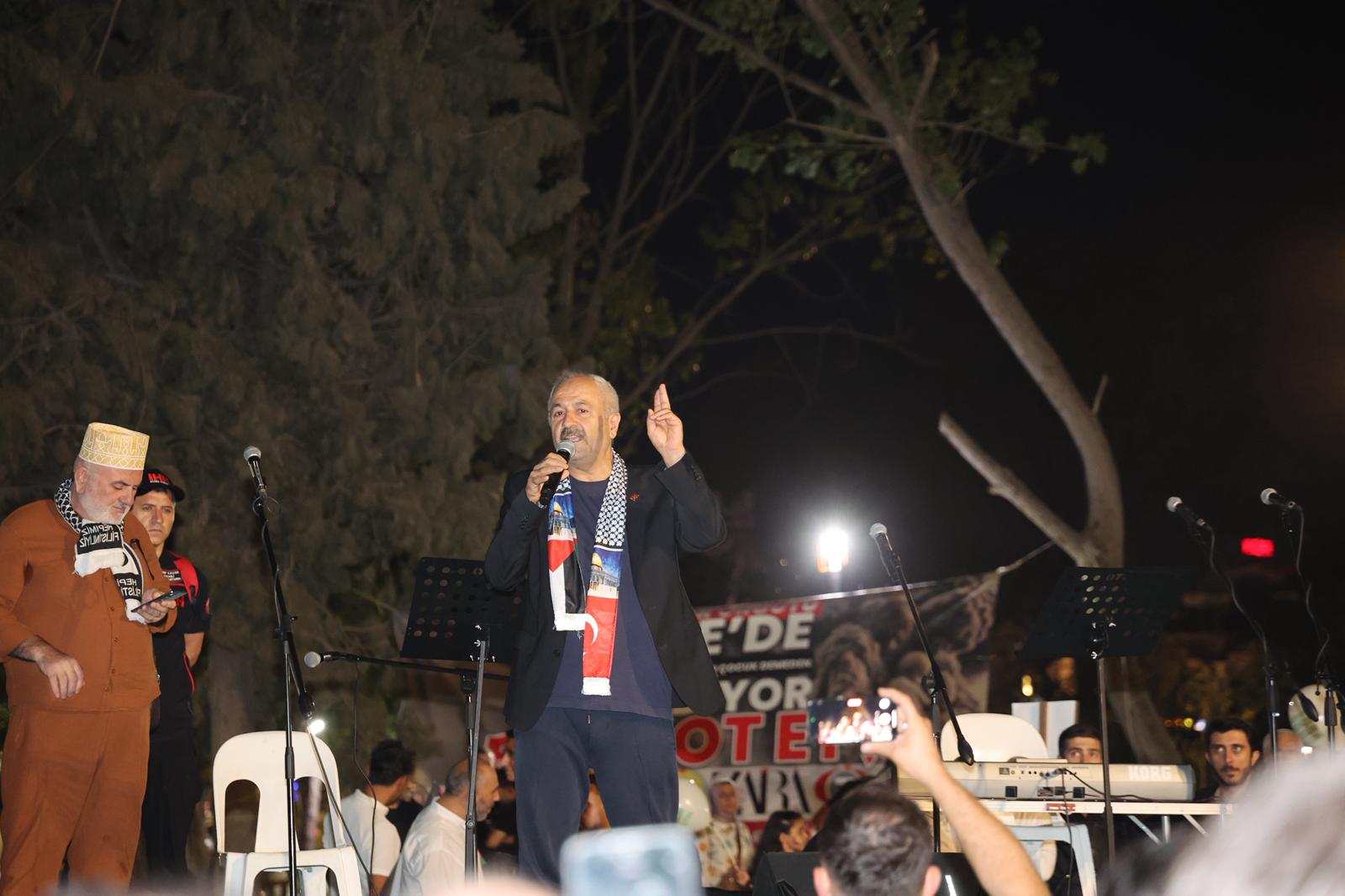 Bu milletin evlatları yeniden dirilişin meşalesini yakacak. Gazze bir gün fethedilecek. Ama o Gazze’yi yeniden imar etmek, inşa etmek, adaletle yeniden o bölgeye hükmetmek için de bizim nerde nasıl durduğumuz çok önemli” ifadelerini kullandı.