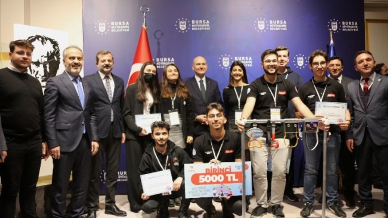 Bursa'nın Gürsu ilçesinde yerel belediyenin İçişleri Bakanlığı destekleriyle gerçekleşen ‘’Genç Zihinler Geleceğe Yön Veren Fikirler’’ projesi finalistleri İçişleri Bakanı Süleyman Soylu ile buluştu.BURSA (İGFA) - İçişleri Bakanlığı Sivil Toplum İlişkileri Genel Müdürlüğü, Gürsu Belediyesi ve Bursa Bilişim ve Yönetişim Derneği ortaklığında hayata geçirilen gençlerin kişisel gelişimlerini ve kapasitelerini geliştirerek ülkemizin dijital dönüşüm sürecine katkı sağlamak, yenilikçi iş fikirlerine destek olarak ekonomiye kazandırmak, geleceğin mesleklerini ve yeni iş modellerini gençlerimize kazandırmak amacıyla düzenlenen ‘Genç Zihinler Geleceğe Yön Veren Fikirler Kampı’ ödüllerini buldu.