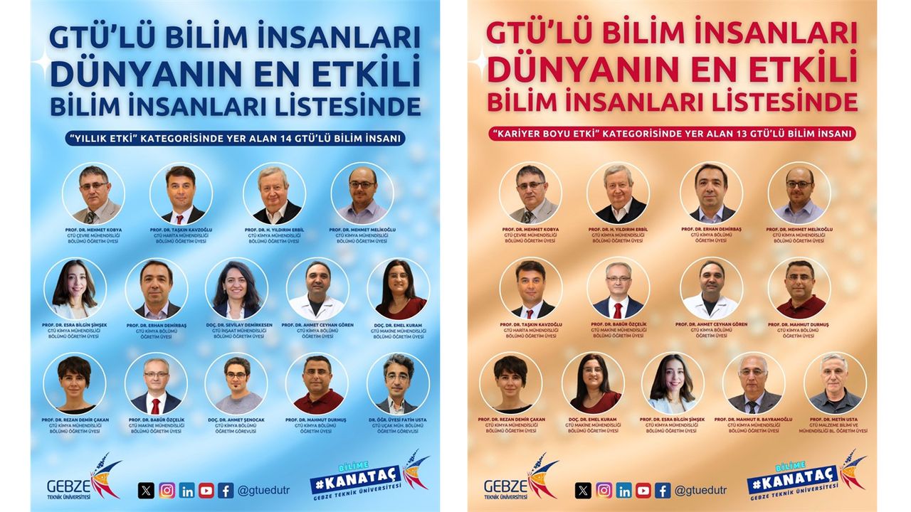Stanford Üniversitesi’nin hazırladığı “Dünyanın En Etkili Bilim İnsanları” listesinde GTÜ’den “Yıllık Etki” kategorisinde 14, “Kariyer Boyu Etki” kategorisinde ise 13 bilim insanı yer aldı.