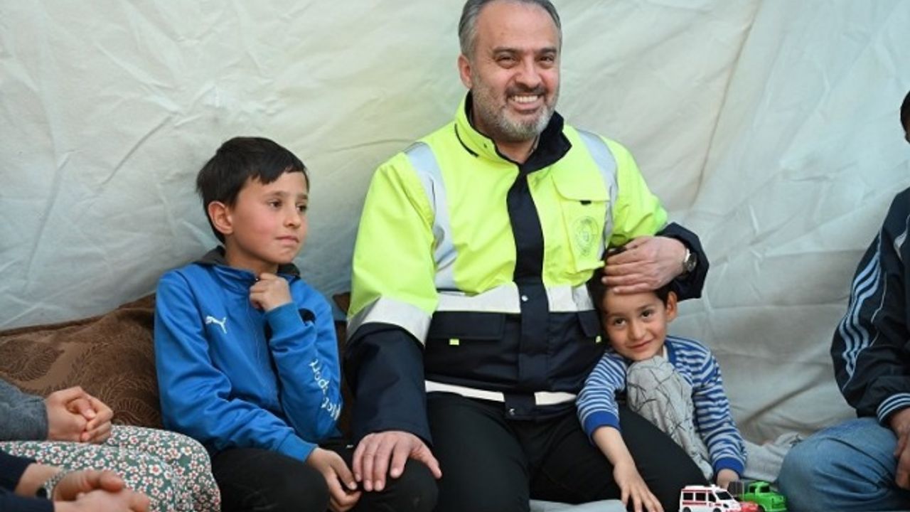Bursa Büyükşehir Belediye Başkanı Alinur Aktaş, Hatay'da kitap talebi karşılanan küçük depremzede Mehmet Sefa'yı kaldığı çadırda, yüzde 99 fiziksel ve zihinsel engelli Mehmet Ali Aşkar'ı da Büyükşehir tarafından temin edilen konteynerde ziyaret etti.BURSA (İGFA) - Türkiye'yi yasa boğan depremlerin ikinci haftasından itibaren Hatay'da konteyner kentler oluşturmak, seyyar tuvalet ve banyolar kurmak için yoğun mesai harcayan Bursa Büyükşehir Belediyesi, diğer taraftan Türkiye genelinden gelen yardımların dağıtımıyla da depremzedelerin gönüllerinde adeta taht kurdu.