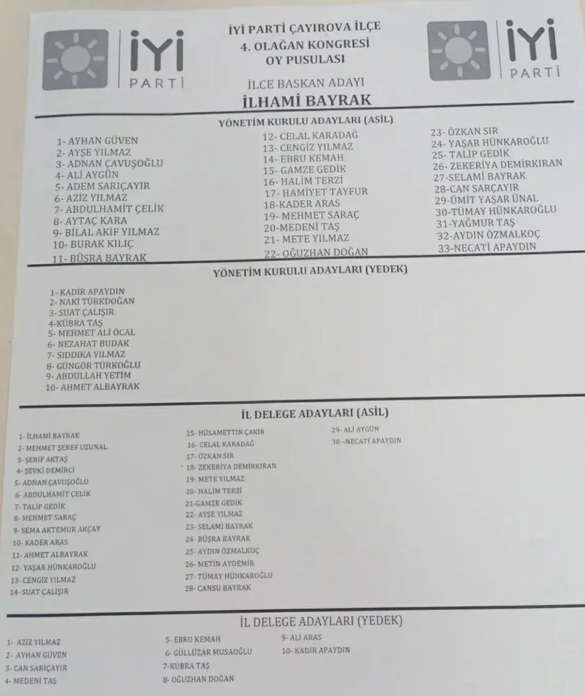 Çayırova Belediyesi Kültür Merkezi’nde gerçekleşen kongreye İYİ Parti Genel Başkan Yardımcısı Cumali Durmuş, İYİ Parti Kocaeli İl Başkanı Mehmet Kamil Şirin, İYİ Parti Kocaeli Milletvekili Lütfü Türkkan, İYİ Parti Çayırova İlçe Başkanı İlhami Bayrak, Gebze İlçe Başkanı Birol Elüstü, Darıca İlçe Başkanı H. Pınar Demirel, İzmit İlçe Başkanı Haluk Tamyüksel, Dilovası İlçe Başkanı Güray Kondu, İYİ Parti Kocaeli İl Gençlik Kolları Başkanı Mustafa Sarı, İYİ Parti Kocaeli Önceki Dönem Başkanı Nusret Acur, İYİ Partili Sadık Güveç ve Şevki Yılmaz, CHP Çayırova Önceki Dönem İlçe Başkanı Cihan Soyluçiçek, İYİ Parti il ve ilçe yöneticileri ile partililer ve delegeler katıldı.