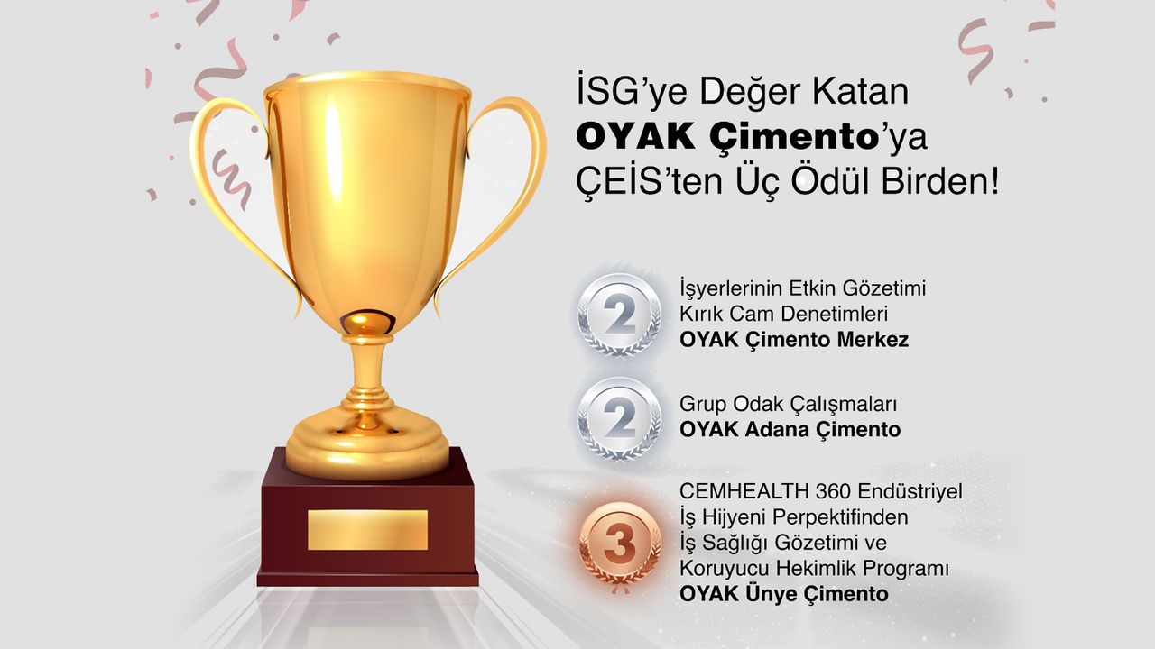 İş Sağlığı ve Güvenliğini kalıcı bir değer haline getirmek ve işyerlerinde sürekli birincil öncelik olmasını sağlamak amacıyla birçok çalışmayı hayata geçiren OYAK Çimento’nun üç projesi, ÇEİS İSG’ye Değer Katanlar Ödülleri 2025 kapsamında ödüle layık görüldü. Şirket, 14 farklı firmadan 2023 ve 2024 yıllarında hayata geçirilentoplam 91 projenin yarıştığı değerlendirme sonucunda "İş Güvenliğine Değer Katanlar", "Sağlığa Değer Katanlar" ve "İSG’ye Liderlik Yapanlar" kategorilerinin kazananı oldu. OYAK Çimento'nun ödül alan projeleri ve kategorileri şöyle: