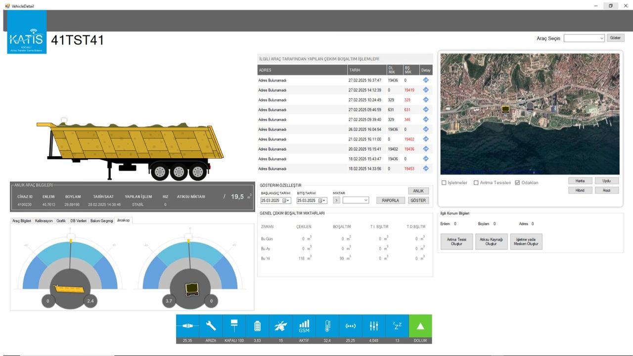 Kocaeli Büyükşehir Belediyesi İSU Genel Müdürlüğü, çevre ve insan sağlığını tehdit eden kontrolsüz atık su boşaltımlarını önlemek amacıyla hayata geçirdiği Kocaeli Atık Su Transfer İzleme Sistemi (KATİS) ile kent genelinde faaliyet gösteren tüm vidanjörler anlık olarak takip ediyor.