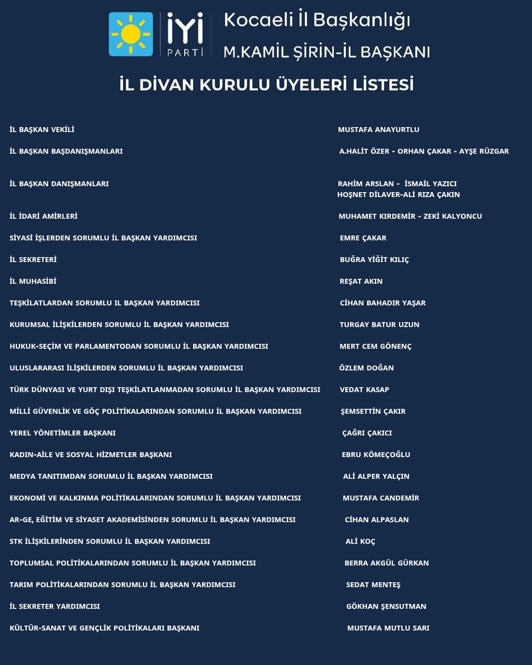 İşte İYİ Parti Kocaeli İl Başkanlığı'nın yeni Divan Kurulu listesi: