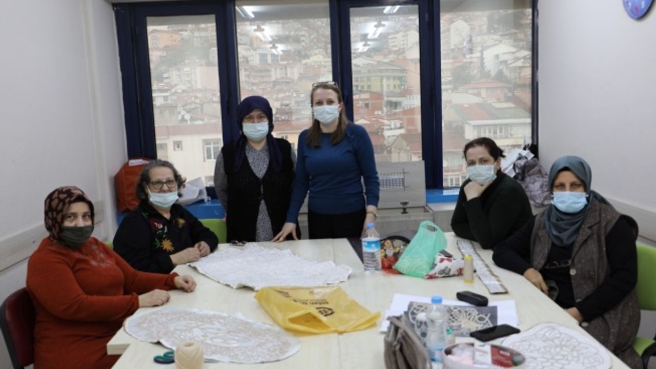İzmit Belediyesi Kadın ve Aile Hizmetleri Müdürlüğü koordinatörlüğünde sosyal mesafe ve hijyen kurallarına dikkat edilerek sürdürülen kurslar, bazı sınıfların 25 metrekare olması nedeniyle iki sınıfı bir öğretmen ve bir branş kullanılarak gerçekleştiriliyor.