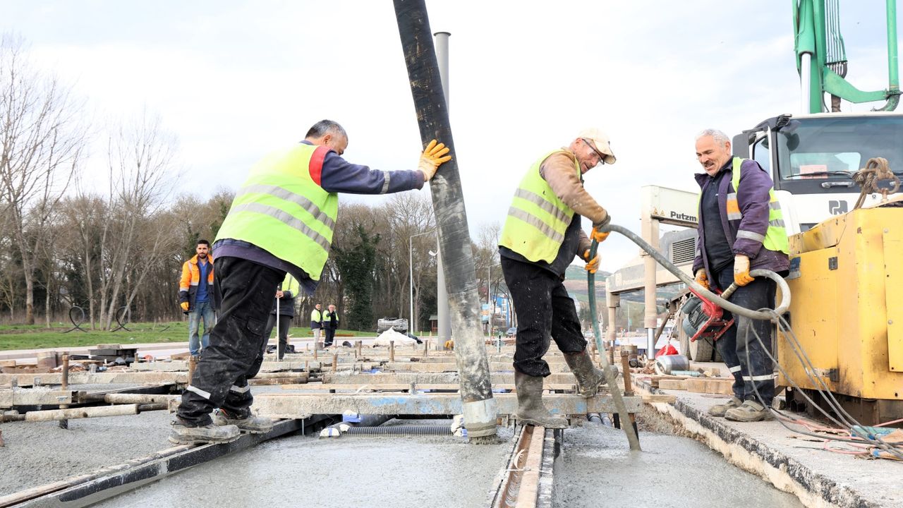 Kocaeli Büyükşehir Belediyesi, kentin rahat ve konforlu ulaşımını demir ağlarla güçlendiriyor. Bu kapsamda İzmit’ten Kartepe’ye uzanan 1,4 kilometrelik yeni tramvay hattında beton dökme işlemleri tüm hızıyla sürüyor.