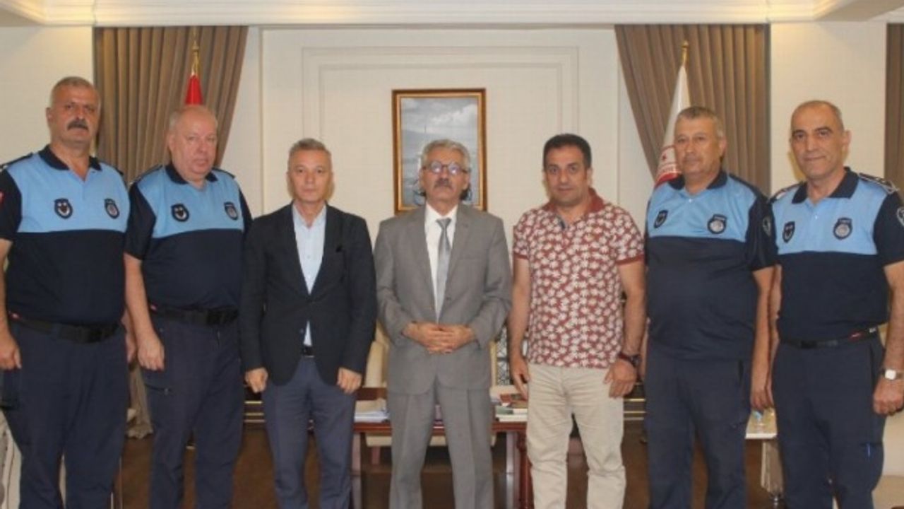 İzmit Belediyesi Zabıta Müdürlüğü İzmit Kaymakamı Yusuf Ziya Çelikkaya’yı makamında ziyaret etti.KOCAELİ (İGFA) - 1-7 Eylül Zabıta Haftası ve Zabıta Teşkilatı’nın 196. kuruluş yıl dönümü sebebiyle İzmit Belediyesi Zabıta Müdürü Ümit Fındık, zabıta personeli ve Spor İşleri Müdürü Mithat Ağa İzmit Kaymakamı Yusuf Ziya Çelikkaya’yı makamında ziyaret etti.