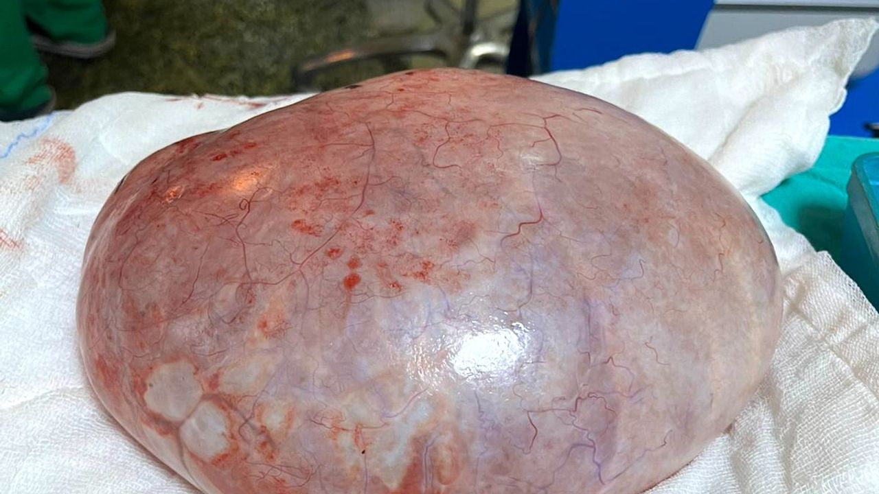 - En büyüğü 40 cm çapında ve 9 kilo ağırlığındaydı. Hasta, karın bölgesindeki şişlik, kronik karın ağrısı, halsizlik, erken doyma, adet düzensizlikleri ve sık idrara çıkma gibi şikayetlerle bize başvurmuştu. Başlangıçta kilo aldığını sanıyordu, ancak kist büyümeye devam edince artan şikayetleri nedeniyle doktora gelmişti.