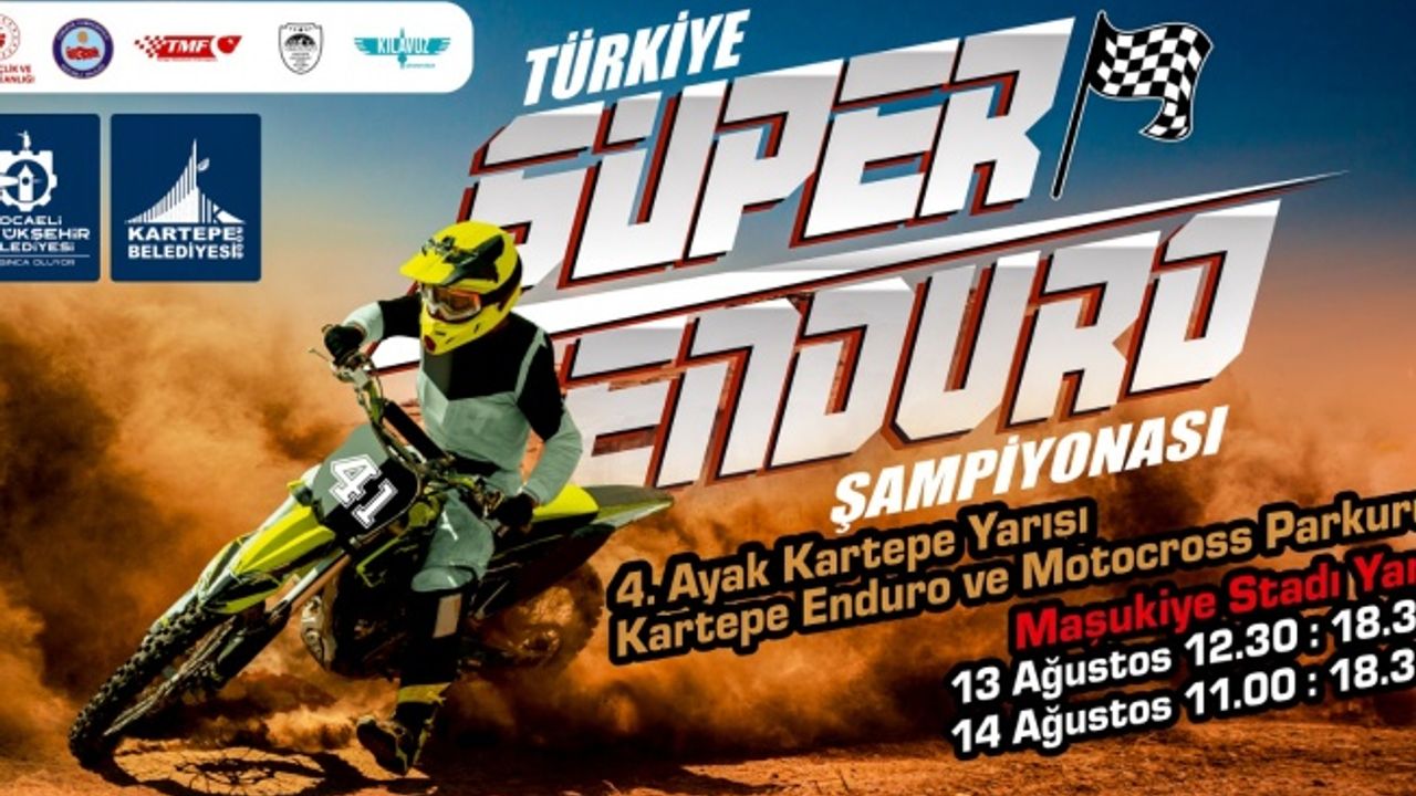 Kocaeli Büyükşehir ve Kartepe Belediyesi ev sahipliğinde Türkiye Süper Enduro Şampiyonası’nın 4.ayak yarışları 13-14 Ağustos tarihleri arasında Kartepe Enduro ve Motocross Parkurunda yapılacak. 80 sporcunun katılacağı yarışmada kıyasıya mücadele yaşanacak.