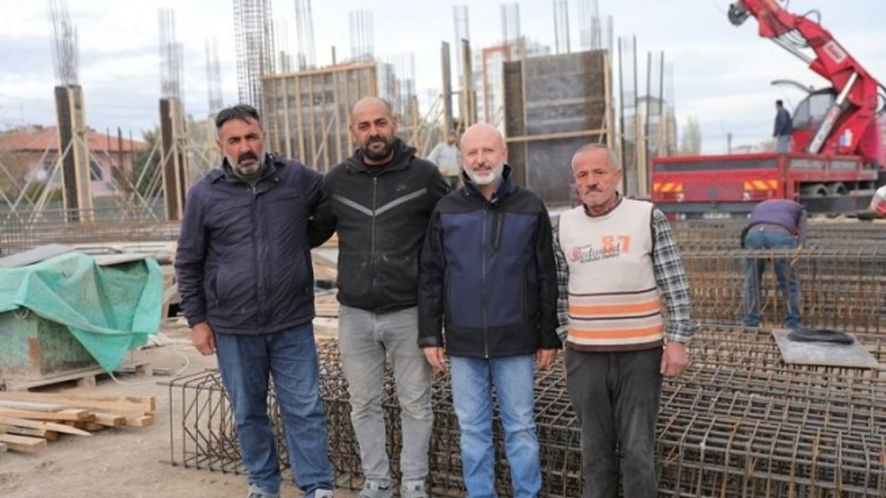 Kentsel Dönüşüm Projesi kapsamında bölgeye kazandırılacak olan tesiste çalışmalarını kontrol eden Kayseri'nin Kocasinan Belediye Başkanı Ahmet Çolakbayrakdar, çalışanlarla sohbet edip, kolaylıklar diledi.