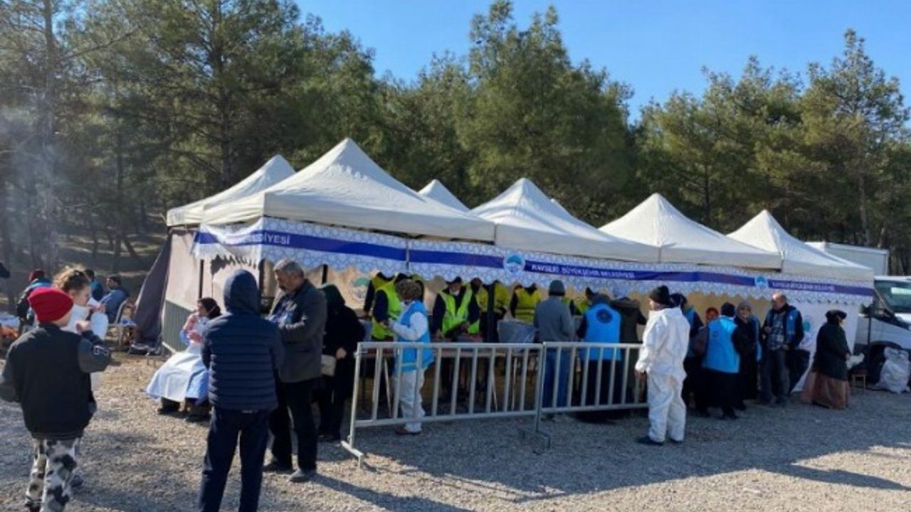 Deprem bölgesindeki vatandaşlara ve gecesini gündüzüne katarak insanüstü bir çabayla çalışan arama ve kurtarma ekiplerine hizmet veren Büyükşehir, depremin yoğun hissedildiği Kahramanmaraş deprem bölgesinde depremzedelere sıcak yemek dağıtmaya devam ediyor.