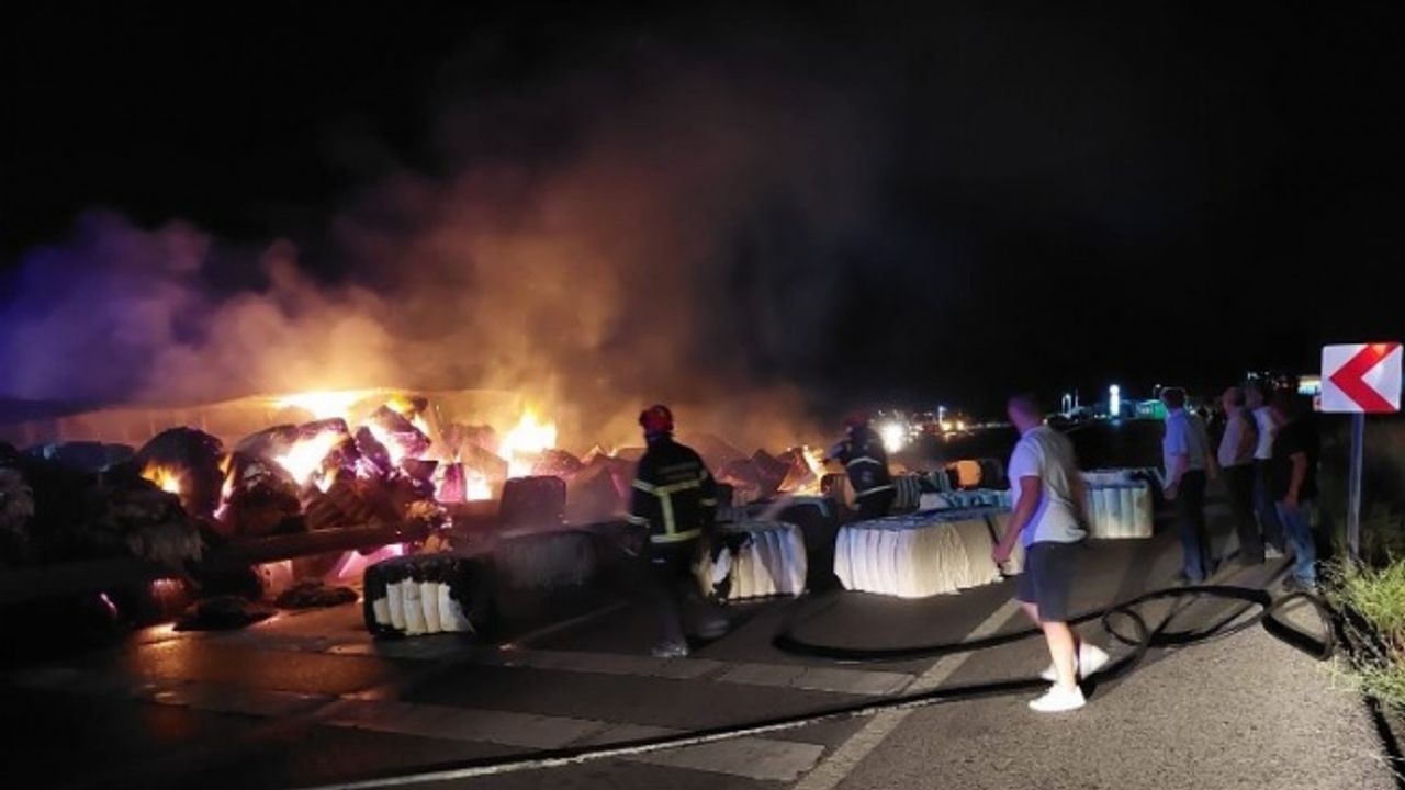 Ergül K. Yönetimindeki 48 VM 148 plakalı TIR Uzunköprü’den Edirne yönüne giderken, Kırcasalih beldesi yakınlarında lastiğinin patlaması sonucu bariyerlere çarptı. Çarpmanın etkisiyle yan yatan TIR’ın kasasında bulunan pamuk balyalarında yangın çıktı.