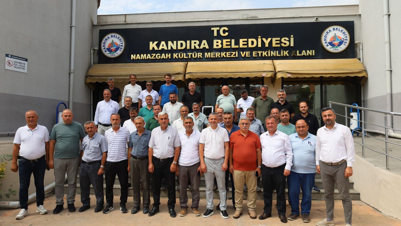 Kandıra Belediyesi Namazgâh Kültür Merkezi’nde gerçekleştirilen “Muhtar Buluşmaları” toplantısına, Büyükşehir Belediyesi Genel Sekreter Yardımcısı Numan Balaban, Muhtarlık İşleri Dairesi Başkanı Uğur Şahin, Kocaeli Muhtarlar Dernek Başkanı İlhan Altıntaş, Kandıra Muhtarlar Derneği Başkanı Yüksel Horos, Türkiye Muhtarlar Derneği Kandıra Şubesi Başkanı Adnan Kaçan, Büyükşehir Belediyesi ve İSU yetkilileri katıldı.