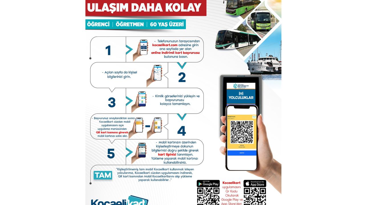 Bu uygulama ile kentte toplu ulaşımı kullanan büyük bir kesim olan öğrenci, öğretmen ve 60 yaş üzeri vatandaşlar, online satış ve yükleme ile Kocaeli Kart’a ulaşabilecek.