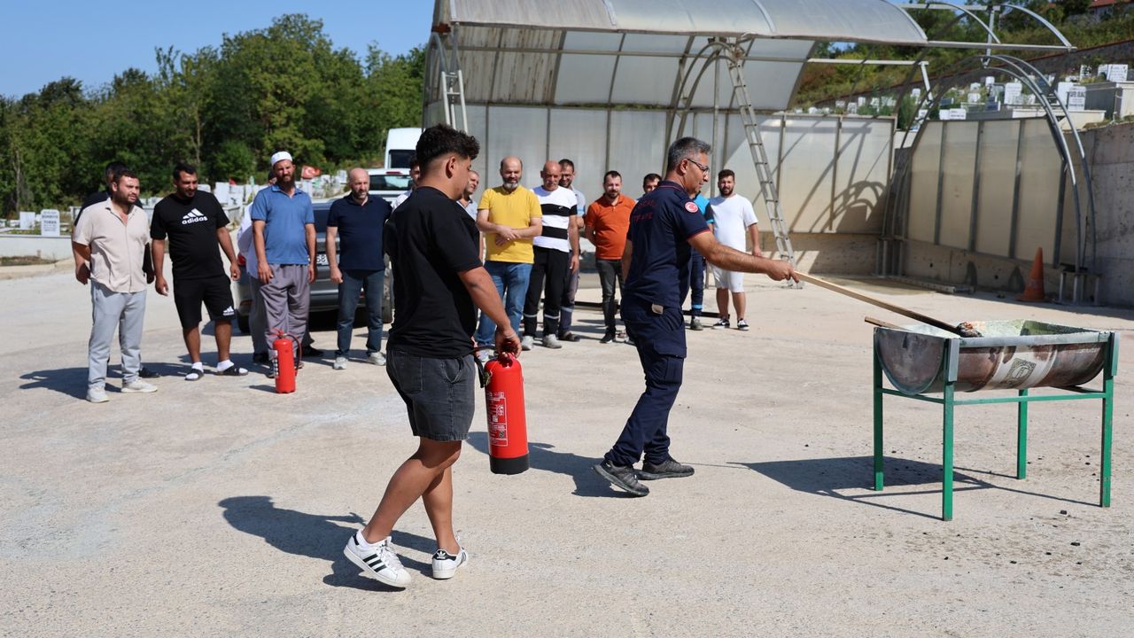 Bu kapsamda Büyükşehir İtfaiye Dairesi Başkanlığı bünyesinde yer alan İtfaiye Eğitim Merkezi (KOBİTEM), Mezarlıklar Şube Müdürlüğü’nde görev yapan tüm personele “Yangın Önleme ve Söndürme Eğitimi” verdi.