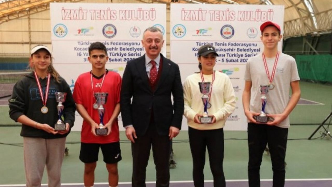 Yetenekli sporcuların yetiştirilmesi kadar Türkiye’de birçok büyük organizasyona da ev sahipliği yapan İzmit Tenis Kulübü yöneticilerini tebrik eden Başkan Büyükakın, TTF ve Okul Sporları Federasyonu tarafından gerçekleştirilecek olan 14 yaş kupası grup şampiyonaları gibi birçok büyük organizasyona da İzmit Tenis Kulübü’nün ev sahipliği yapacağından dolayı memnuniyetini de dile getirdi. 16 Yaş turnuvasına Türkiye’nin değişik illerinde gelen 74 erkek 51 bayan sporcu katılarak yedi gün boyunca çok çekişmeli maçlar sonunda dereceye girenleri tebrik eden Başkan Büyükakın, “Sporcularımızı başarılarından dolayı tek tek kutluyorum. Kocaeli’den de sporcularımızın derece alması bizleri son derece mutlu etti, gururlandırdı” dedi.