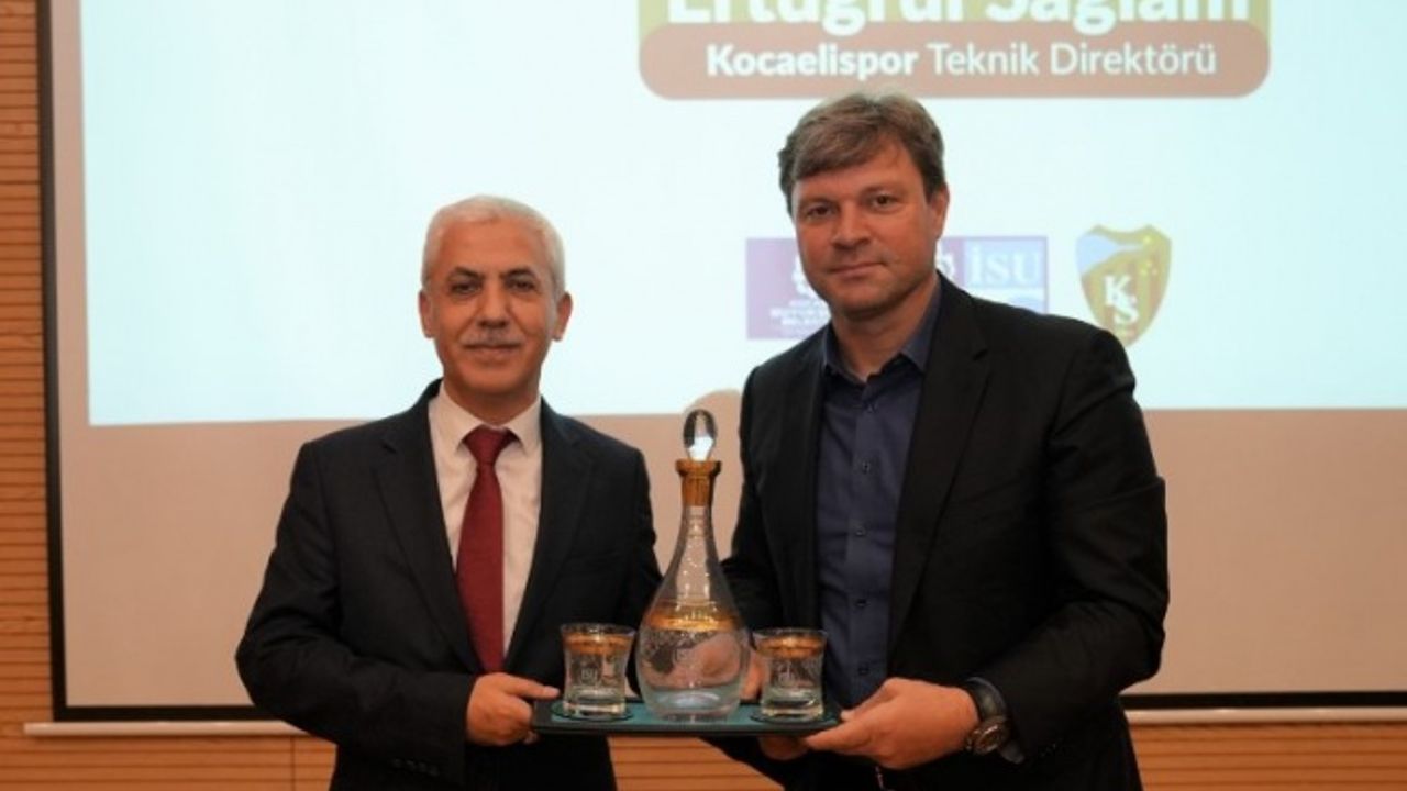 Kocaelispor Teknik Direktörü Ertuğrul Sağlam “Sporun Kent Kültürüne Etkisi” adlı seminerde İSU Genel Müdürlüğü personeliyle buluştu. Teknik direktör Ertuğrul Sağlam: “ Bu sene, ligde olmak istediğimiz yerdeyiz, ligin geri kalanında da bu pozisyonumuzu korumak istiyoruz.” dedi.KOCAELİ (İGFA) - İSU Genel Müdürlüğü; personel yetkinliğinin geliştirilmesi için hizmet içi eğitimlerin yanında, personelin güncel konularla ilgili bilgi edinmesi ve toplumsal kültüre katkısının arttırılmasını sağlayacak etkinlikler de düzenliyor. Bu kapsamda Kocaeli’nin önemli değerlerinden ve markalarından Kocaelispor ve İSU Genel Müdürlüğü "Sporun Kent Kültürüne Etkisi" adlı seminerde bir araya geldi.